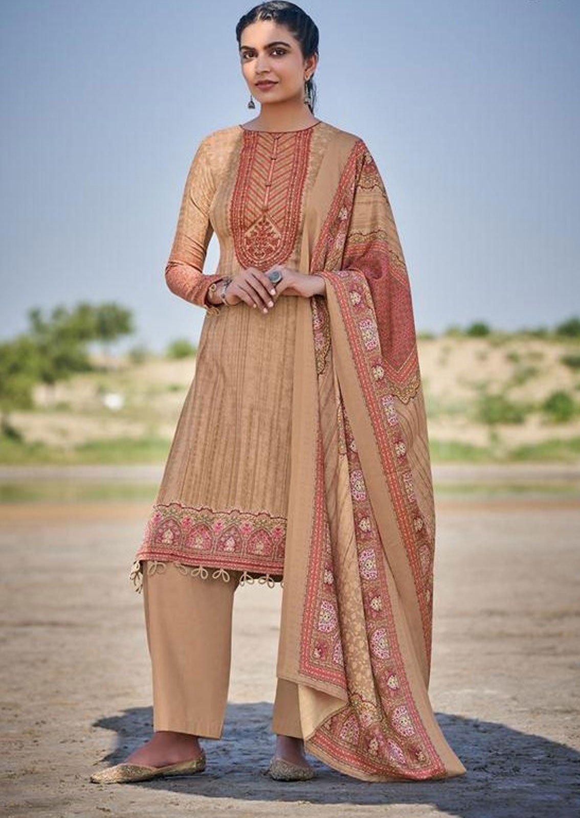 Beige Pashmina woollen Suit