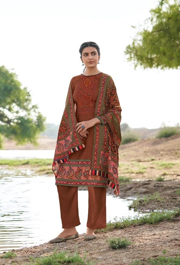 Rust Pashmina woollen Suit