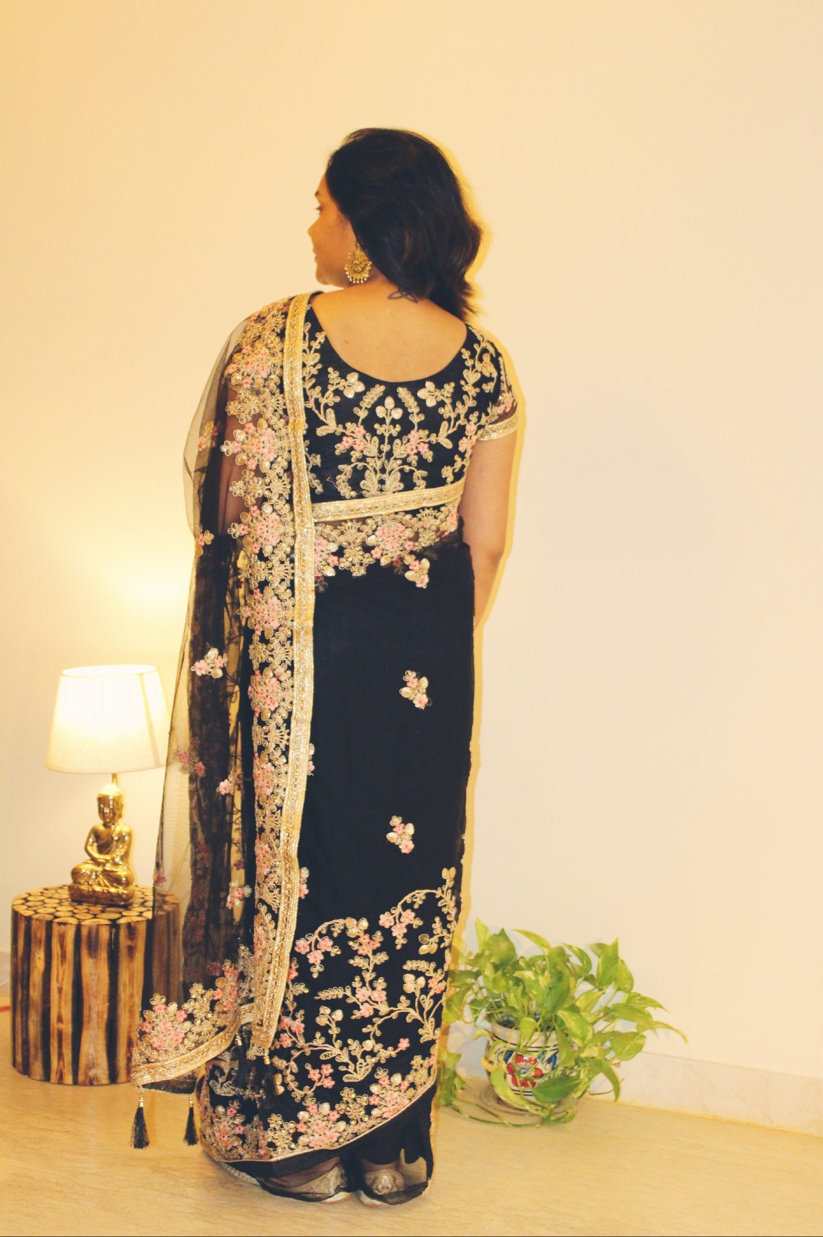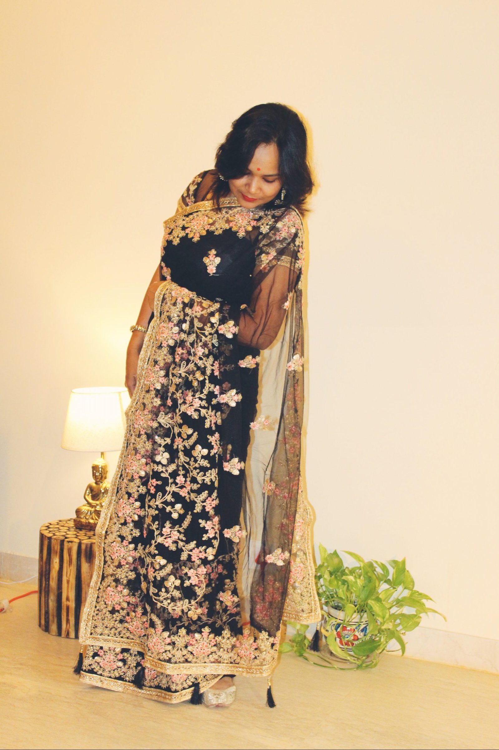 Black Net Saree with Embroidery & Stone handwork