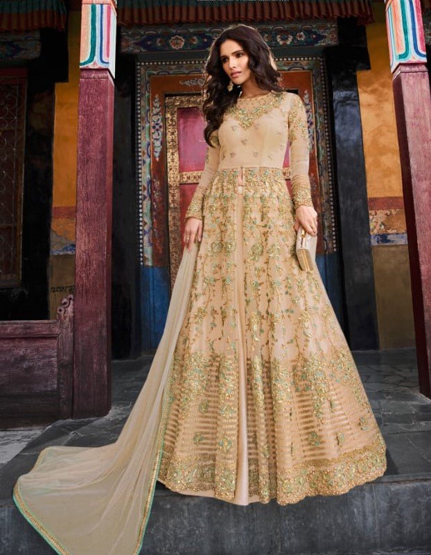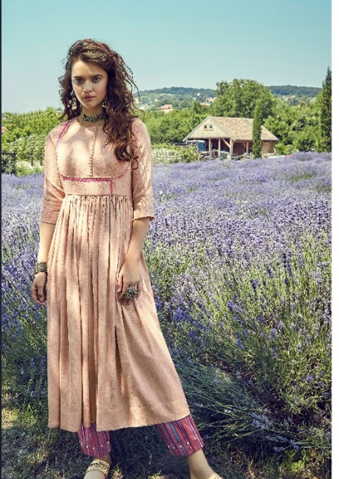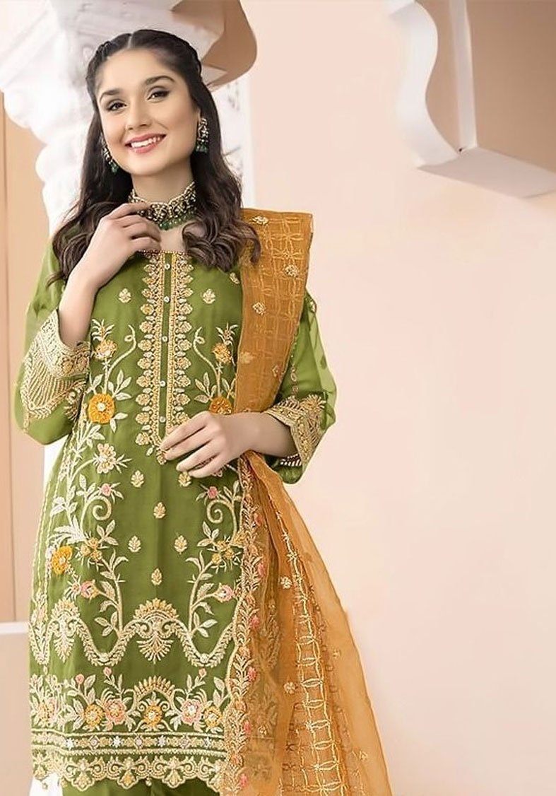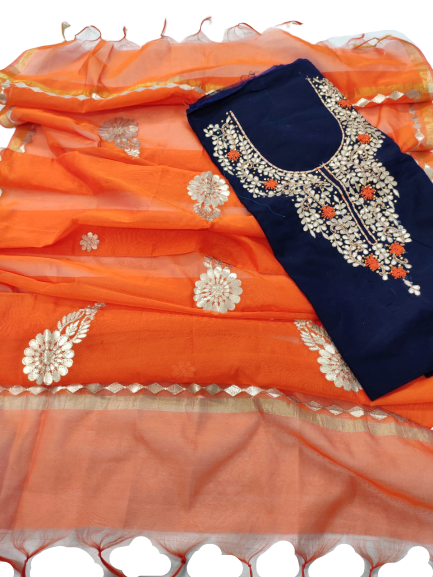 Grey & Pink Georgette zari and thread embroidery suit with pearl border