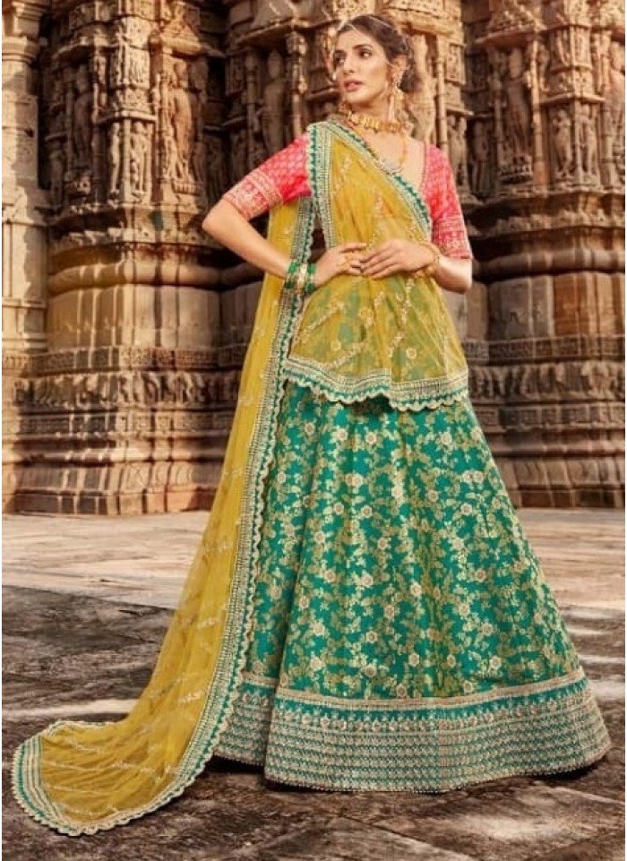 Multicolored Jacquard fabric embroidered Lehenga